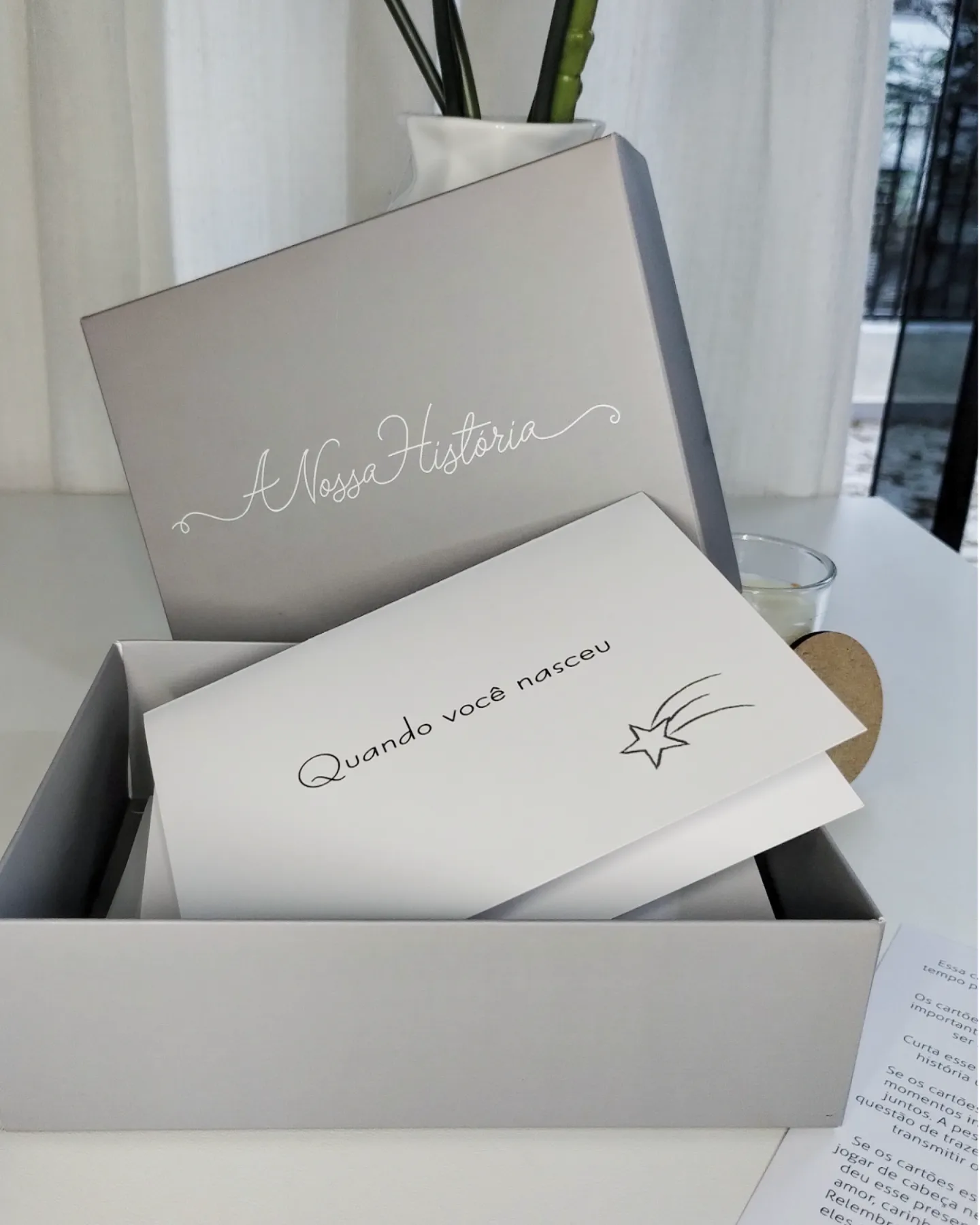 A Caixa de Memórias da A Nossa História, contém 14 cartões para presentear ou se presentear e auxiliar no seu processo de luto, independente de qual luto seja!